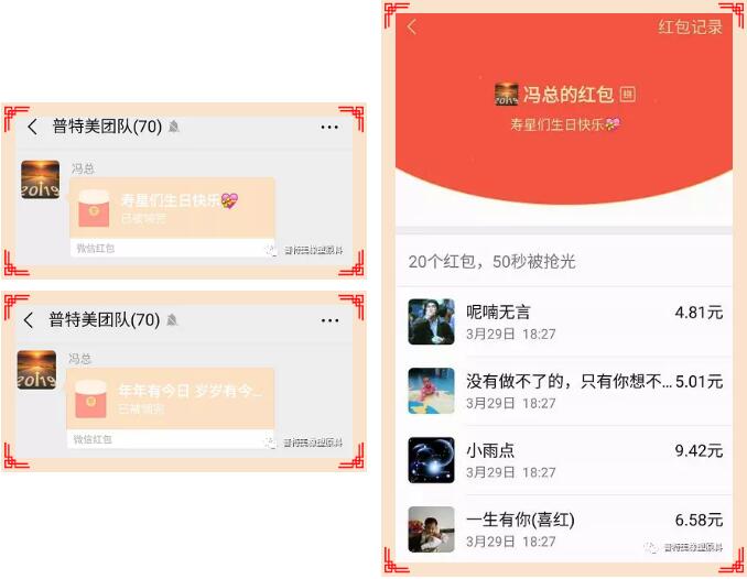 馮總的紅包雨祝福更是點燃了壽星們的激情。