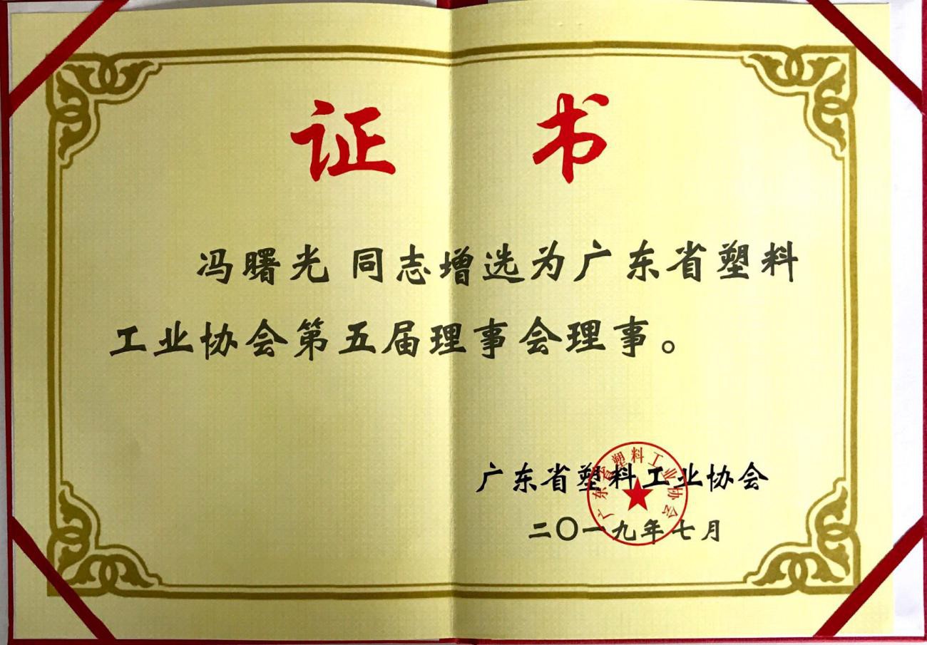 讓我們在這里也恭喜馮總增選為廣東省塑料工業協會第五屆理事會理事。