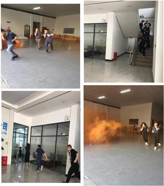 上午8:10分,在事先通知員工的情況下,隨著大樓警報聲響起,模擬大樓內1層發生火情,正迅速蔓延,員工用手捂著口鼻飛速逃離火災模擬現場。