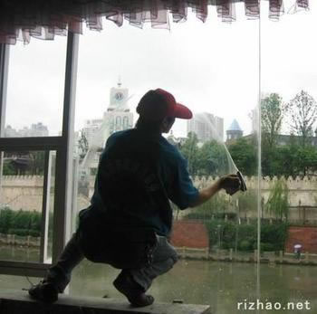 將涂水毛套放入配制好的玻璃清潔劑中充分蘸濕,均勻擠干至不滴水為止。從玻璃的一邊開始,均勻地將玻璃清潔劑涂抹在玻璃表面,涂抹方式可為S形或采用從上至下的直線方式,注意每次涂抹的面積不宜過大,以免清潔劑風(fēng)干。